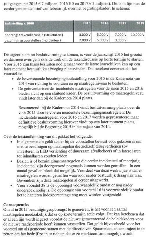 Brief college over incidentele bezuinigingen. De hele brief : brief college d.d. 16 april 2014 inzake incidentele bezuinigingsmaatregelen 2015-2017-2