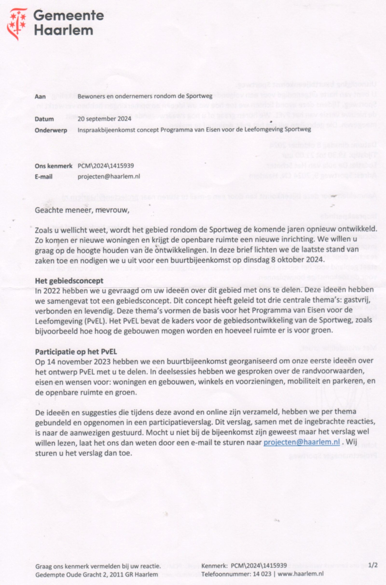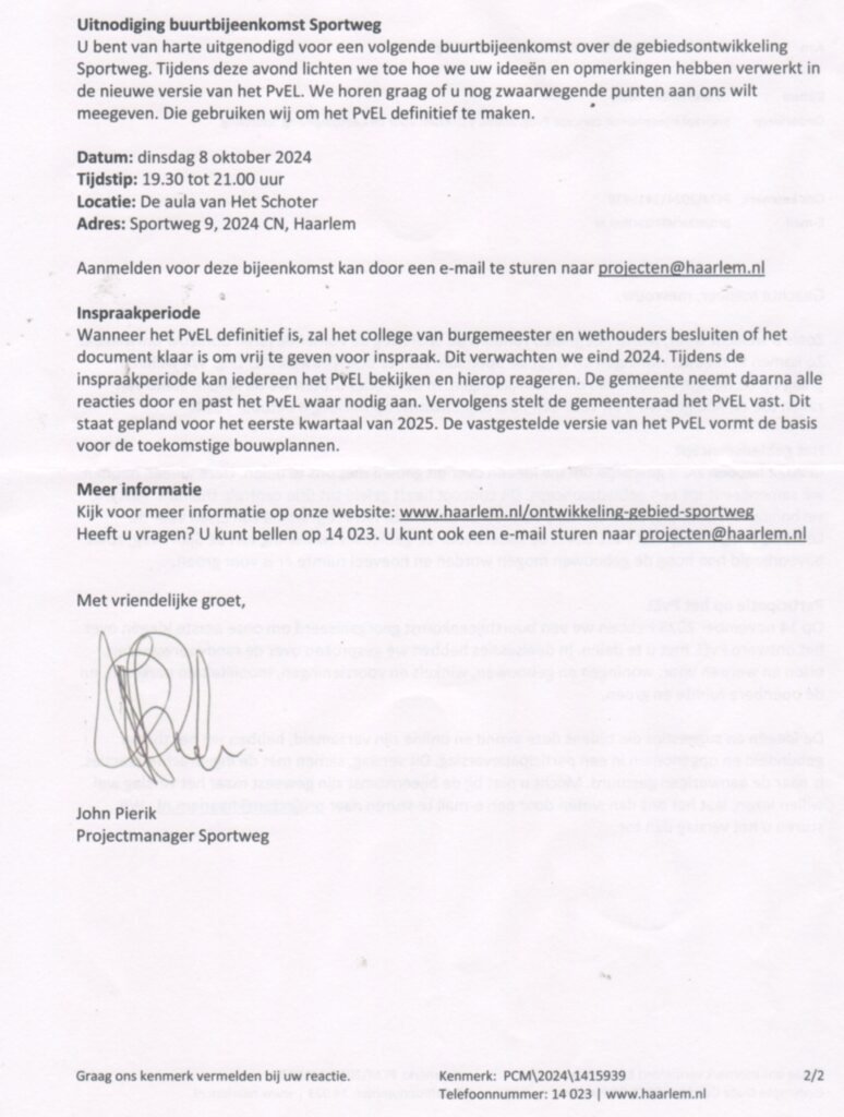 Inspraakbijeenkomst concept Leefomgeving Sportweg