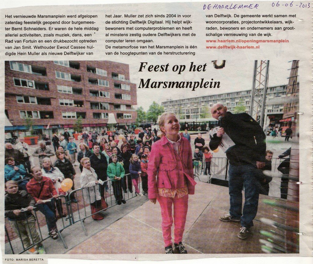 Ondanks het winderige en ietwat koude weer was de opening van het Marsmanplein op 1 Juni 2013 een groot succes.