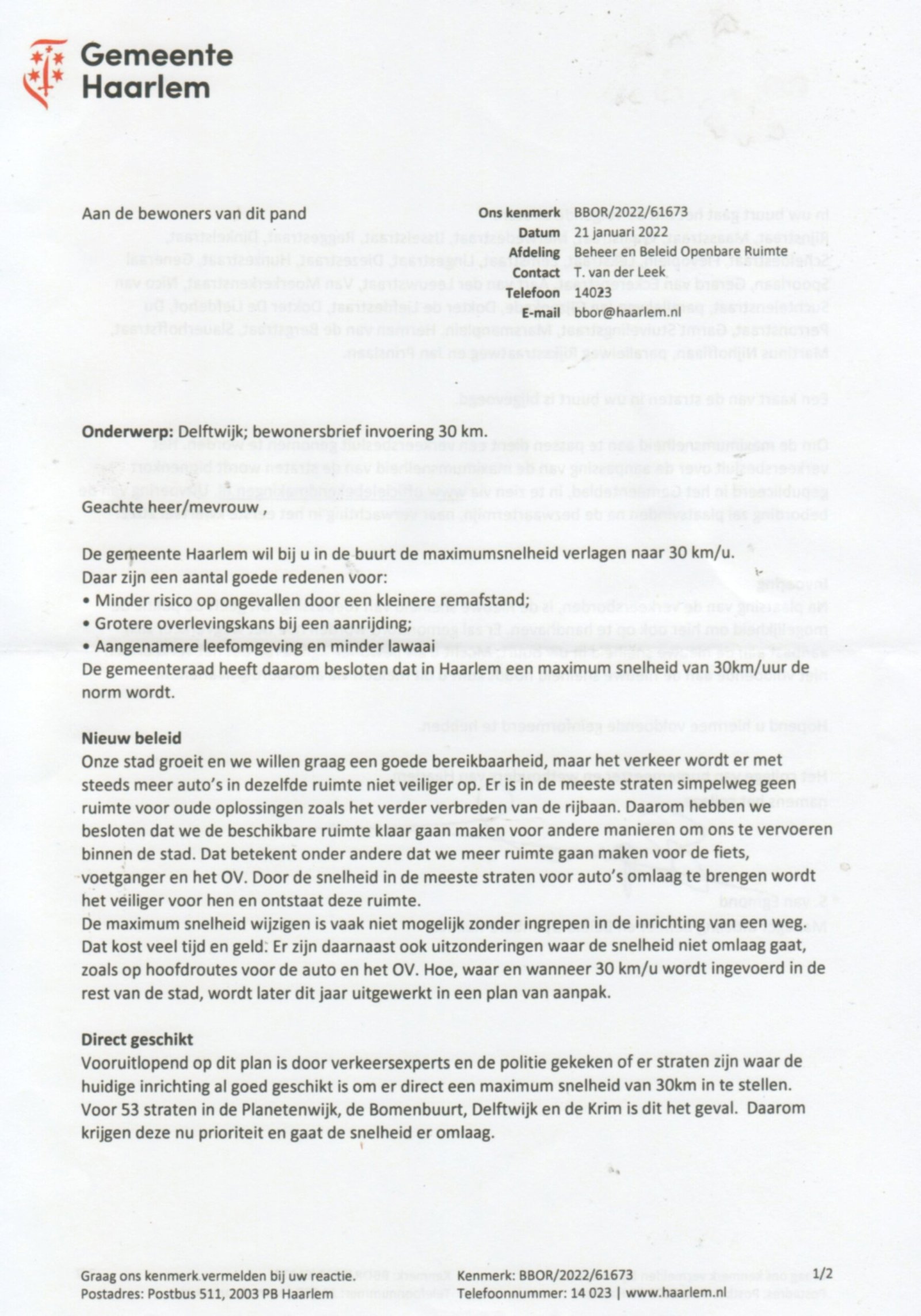 Procesmanager gemeente Haarlem Graag ons kenmerk vermelden bij uw reactie. Kenmerk: 2022/ 523857 Telefoonnummer: 14 023 | www.haarlem.nl